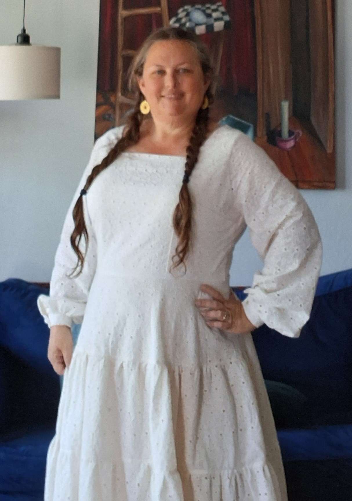 (I traced it off b/c it's flattering and comfortable and simple - and I had quite a lot of voile to use).